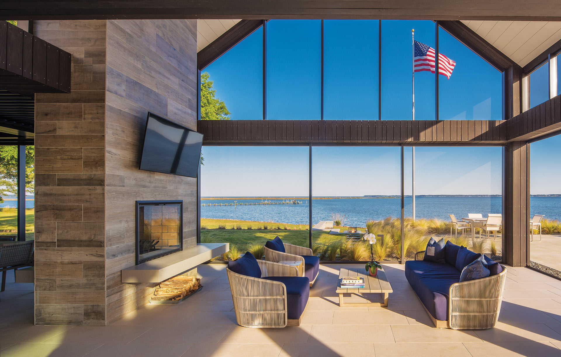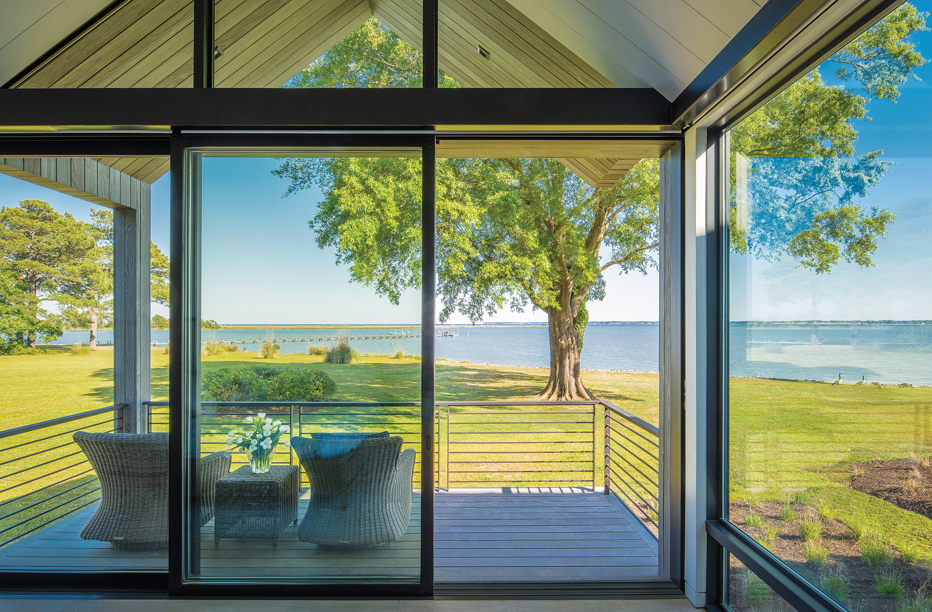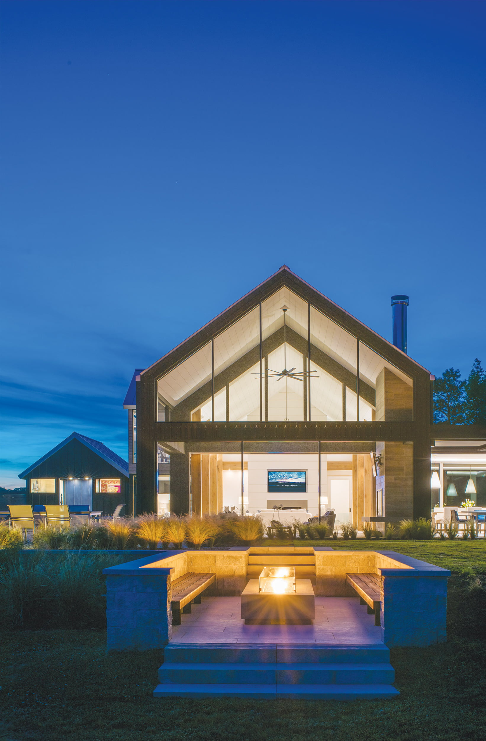 Meanwhile, the house is such a hit that the couple has an occupancy schedule for their adult children, who each visit one weekend per month. Of course, the elder Hunters have visiting rights whenever they like. Their favorite time? That’s easy, says Dede Hunter. “In the winter, we can sit in our study, have the fireplace going and look both ways at the water. It’s our happy place.”