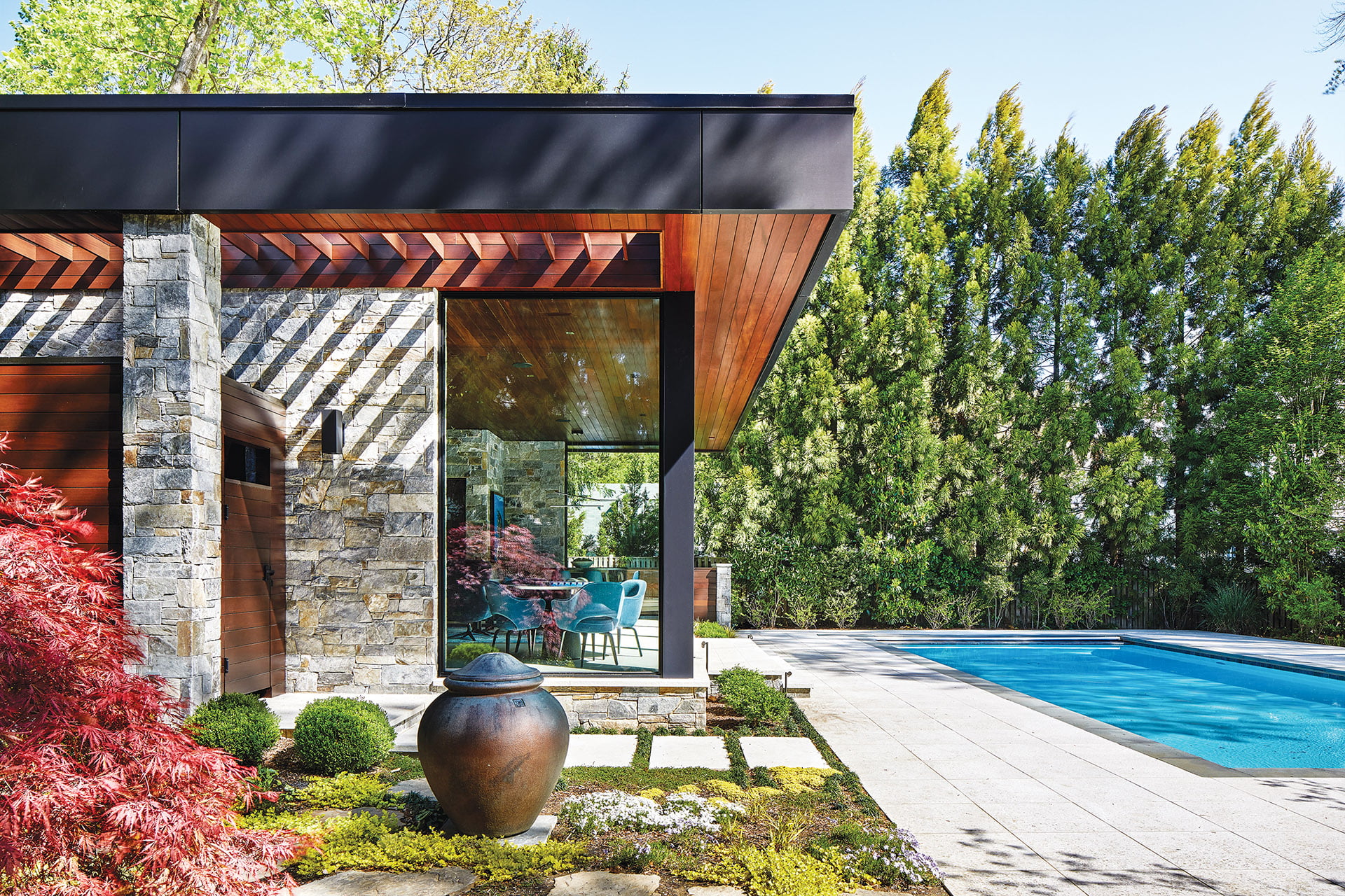 JEFFCO Development won a Gold award in the category of Custom Accessory Structure for a modern Bethesda pool house. Photo: Stacy Zarin Goldberg