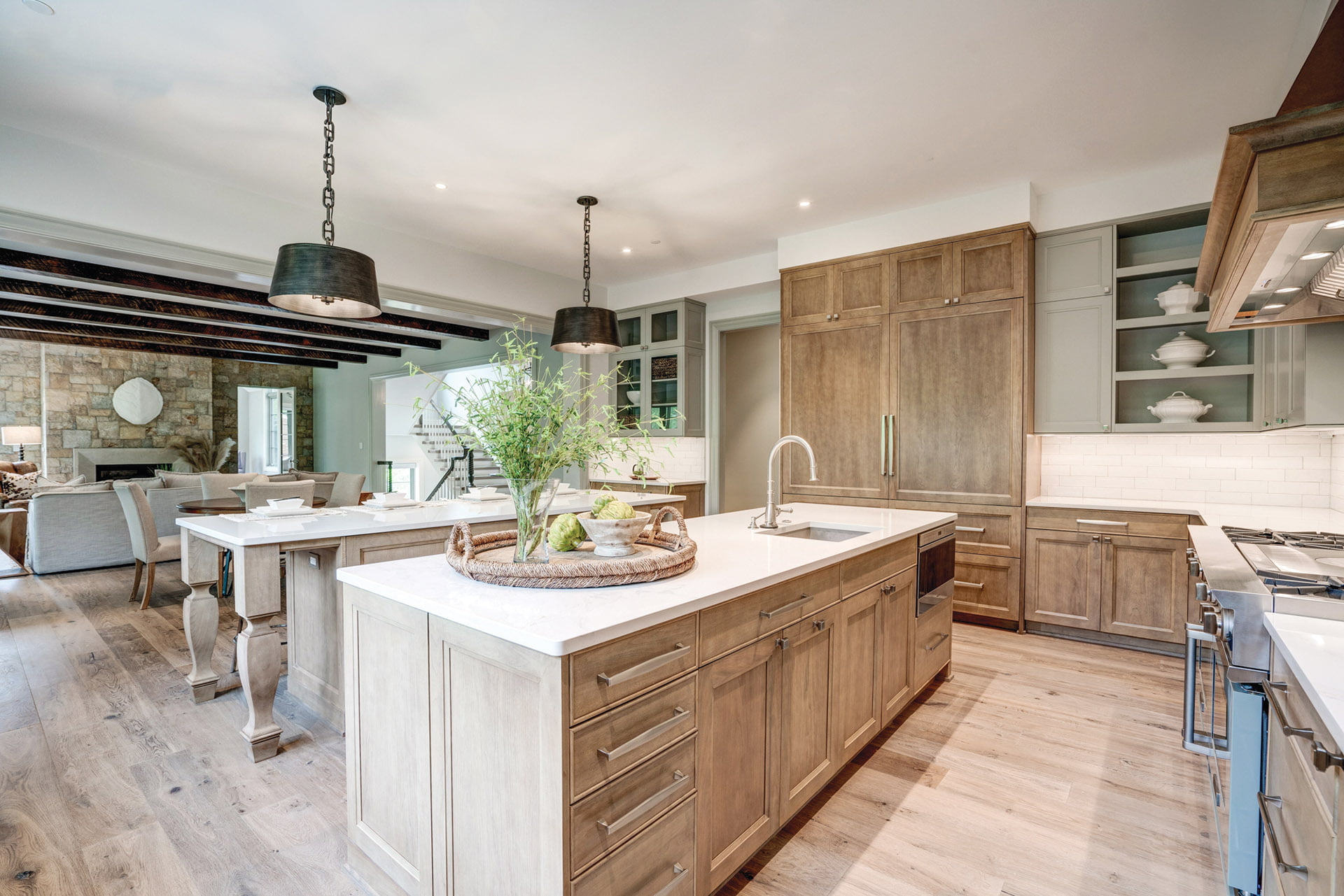 Claude C. Lapp Architects, LLC, completed a Bethesda home with a rustic kitchen; the project won a Gold award for Speculative Home, 7,000 to 7,999 square feet.