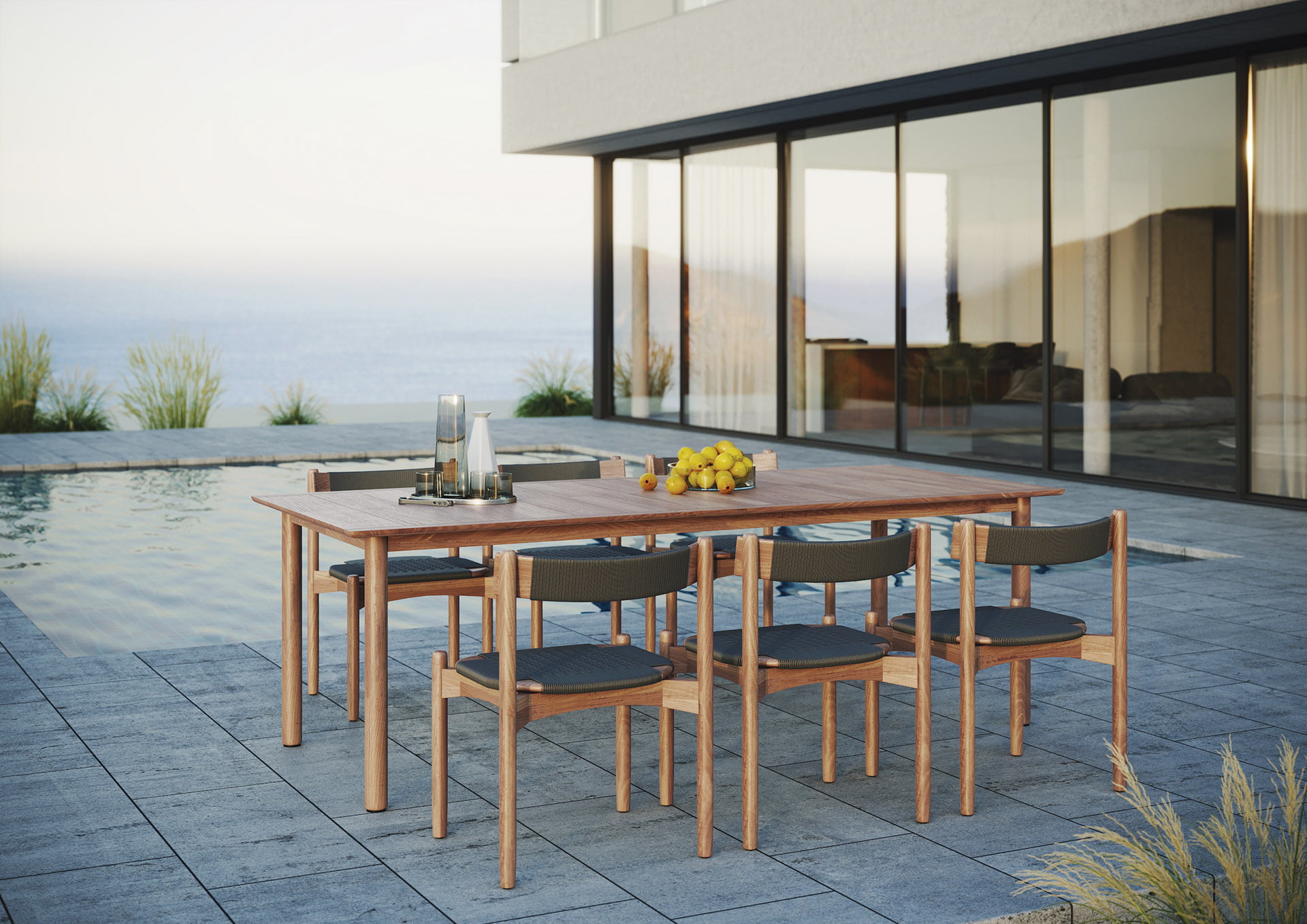 The Koster Collection is named for the Koster Islands, an archipelago off of Sweden’s rugged west coast. Designed for the Swedish brand Skargaarden, the line’s tables and chairs are made of teak and acrylic rope and built to withstand the country’s weather extremes: heavy winds, torrential rain, blistering heat and sub-zero temperatures. skargaarden.com